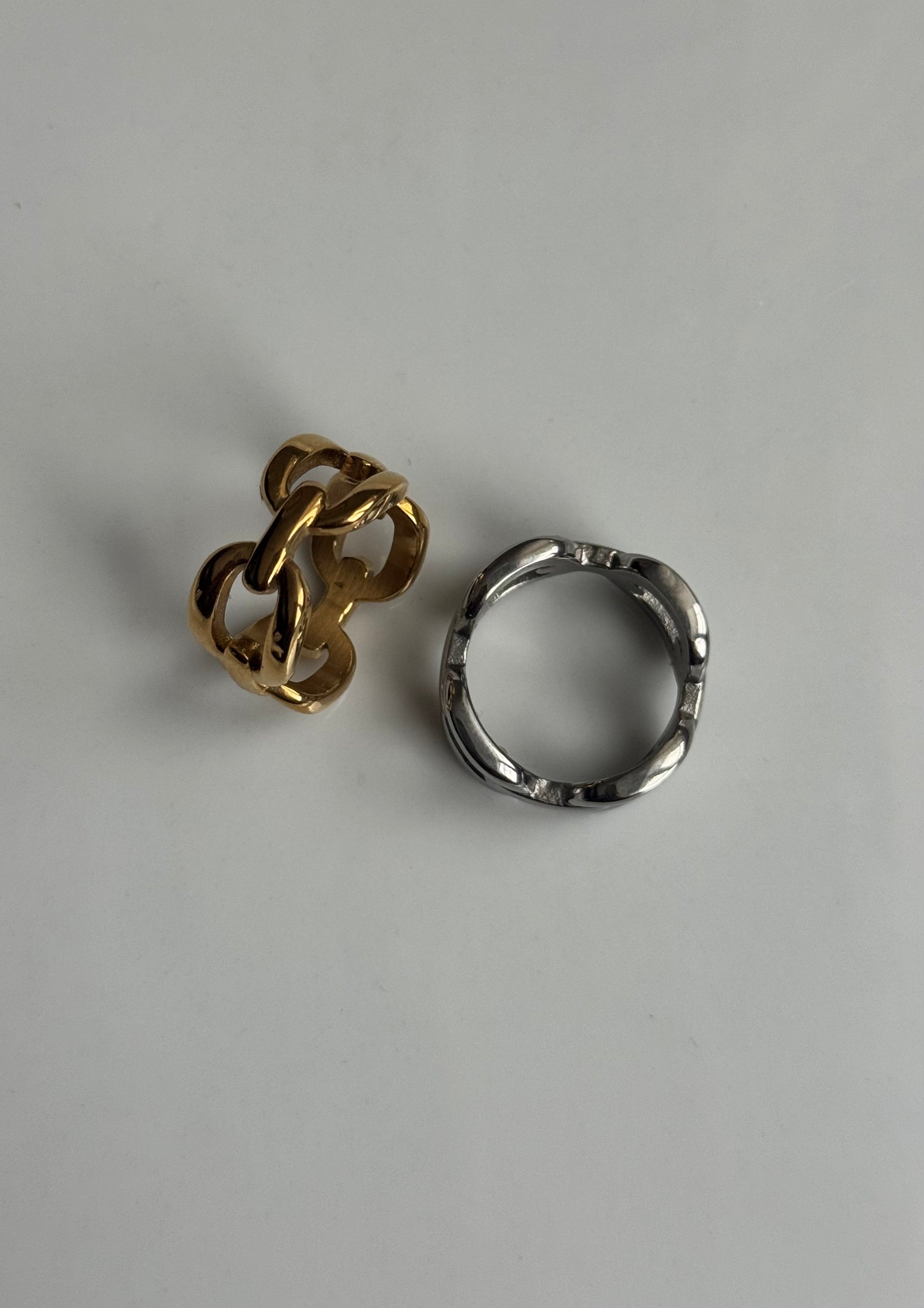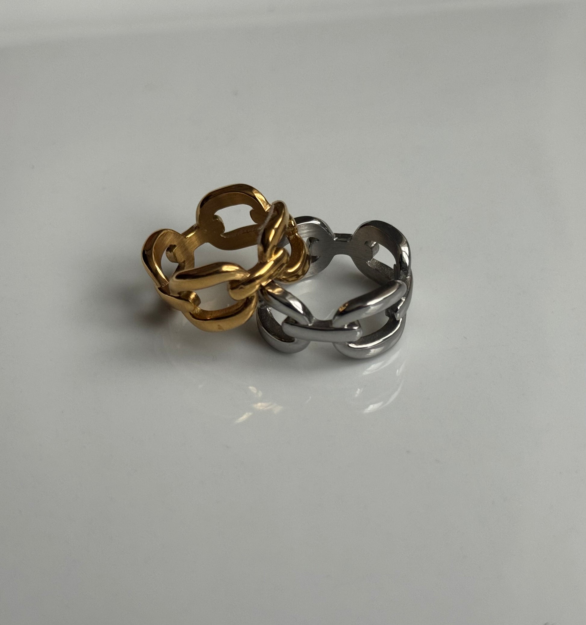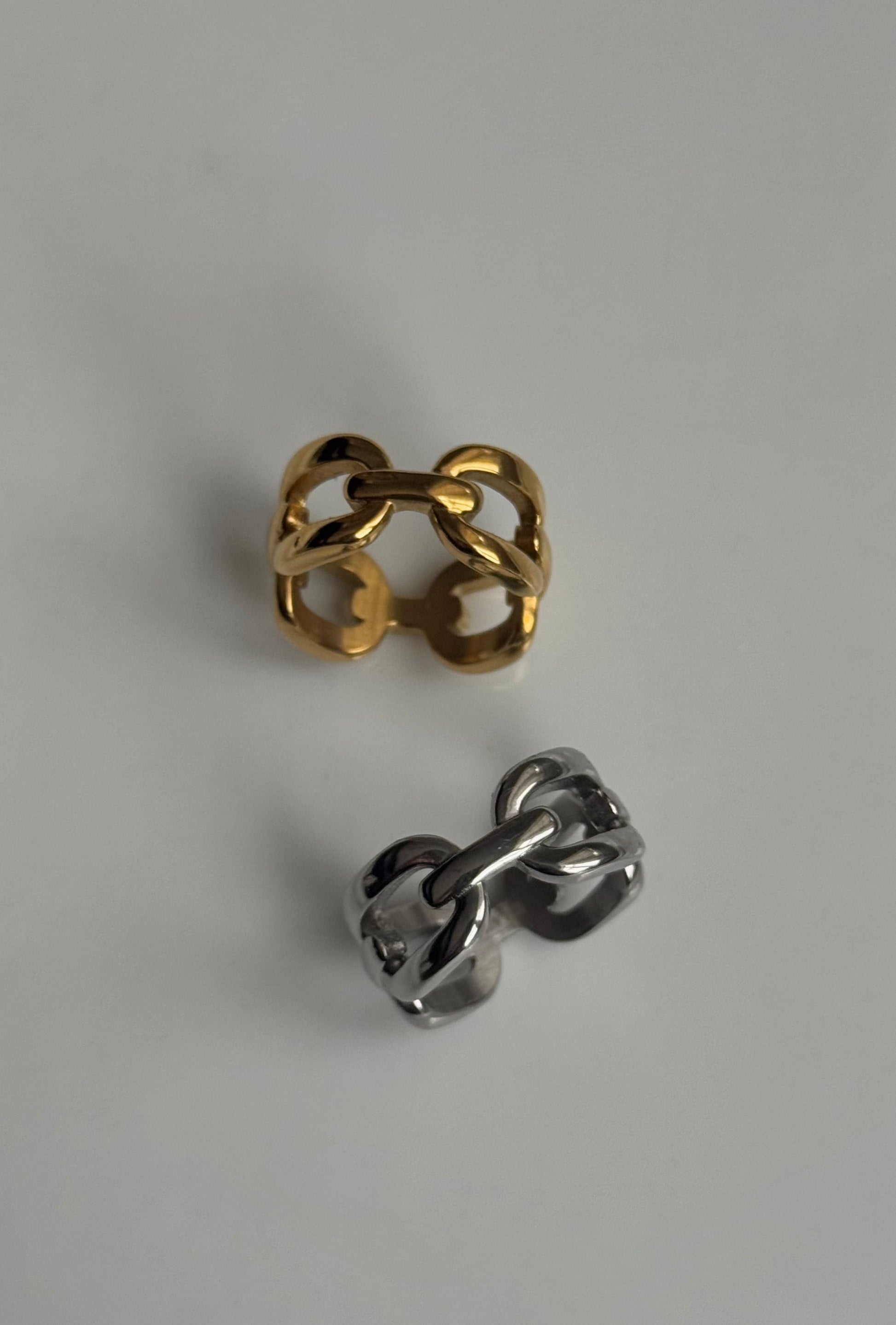 A twist on the classic chain ring, This is Maddi our cuban link statement ring, perfect for stacking or wearing on its own.
